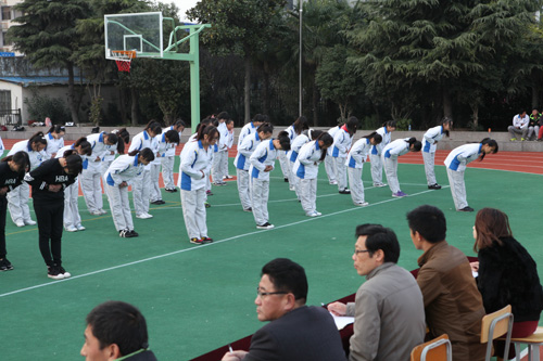 11月12日下午,由校学生处、团委主办的我校2014级新生职业操比赛在东操场举行。校长助理、机电信息系主任刘永云、烹饪旅游系主任朱年、招生办主任王永、团委副书记鲁宁以及高为老师担任评委。