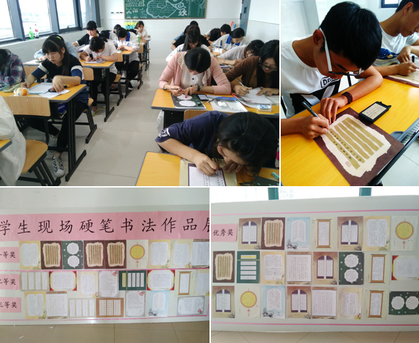 5月25日下午,教学大楼504、505教室济济一堂,近100名由各班选派出来的书法选手们集聚在这里进行紧张的硬笔书法决赛。为确保公平、公正,比赛由学校统一提供纸张,采用现场书写的方式进行,在整个比赛活动中,选手们个个聚精会神,将身心融于笔端,所写作品或有劲大气,或飘逸潇洒,或娟秀玲珑,充分展现了我校学生的基本技能水平和整体素质。在全体参赛选手的共同努力下,本次书法比赛取得了圆满的成功。