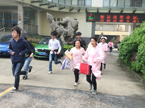 当广播中响起警报时,全体人员严格按照突发事件应急预案,进入各自岗位进行及时疏散,各班学生在老师指挥下按照指定的安全出口,有序地离开教室,紧急撤离到安全地带。整个过程紧张而有序,全体学生和老师全部安全、迅速地到达集合地点,收到了预期效果。