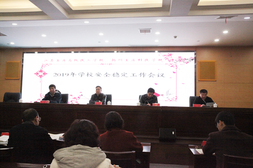 3月21日下午,学校在三楼会议室召开2019年安全稳定工作会议,校领导高洪树、袁建中、聂阳、吴健出席会议,学校全体教职工参加了会议。会议由纪委书记袁建中主持。