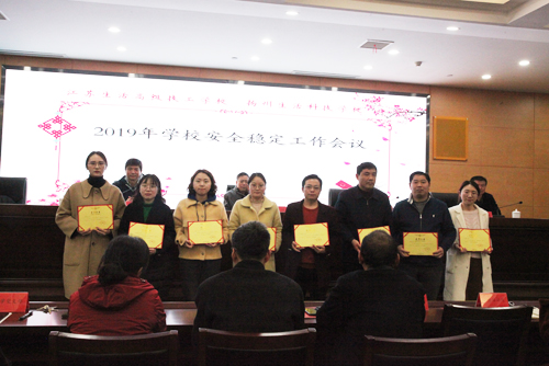会上,副校长吴健总结了学校2018年安全稳定工作所取得成绩,提出了存在的不足,并对2019年安全稳定工作进行了安排部署。副校长聂阳宣读了《关于表彰2018年度学校安全工作考核先进单位和个人的决定》,校领导分别向获得表彰的先进集体和个人颁发了荣誉证书。随后,学校主要领导与分管校领导、分管校领导与部门负责人分别签订了2019年安全稳定责任书。