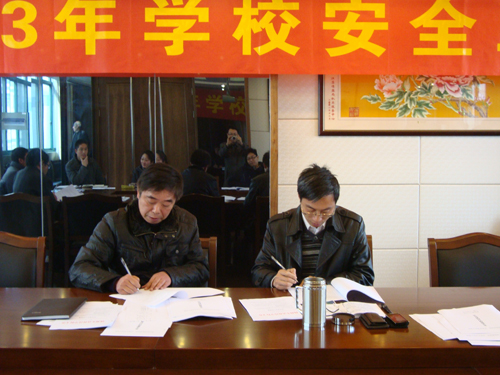 会上,校党委书记李东岩总结了2012年学校安全工作,指出了我校过去一年在安全工作方面取得的成绩和存在的不足,并对2013年学校安全工作进行了全面的安排部署。接着,校领导与各分管校领导、校领导与各部门负责人分别签订了2013年学校安全责任制。