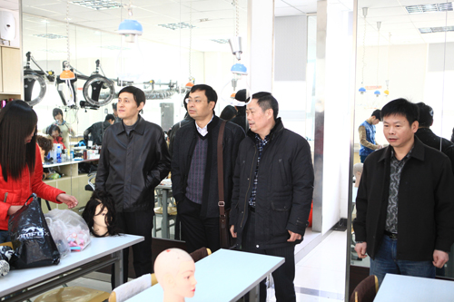 黄书记一行6人刚到学校不顾车马劳顿就在校领导的陪同下深入学校实习、实训室、机房等场所进行实地考察。高校长对学校概况、实训室建设情况作了介绍。客人们对我校的办学特色和取得的成绩赞不绝口,同时就合作办学事宜与我校领导进行了深入洽谈。