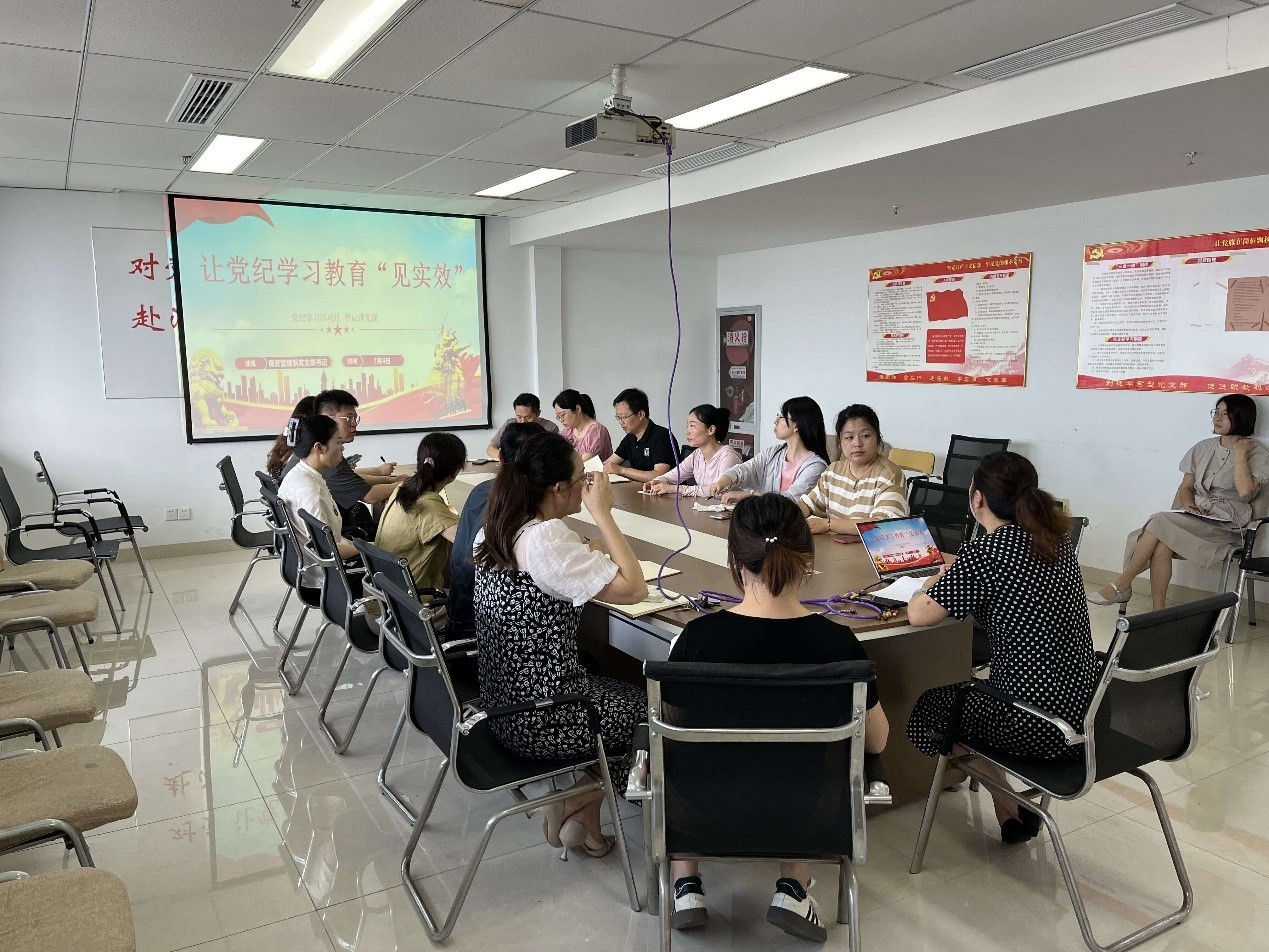 7月5日,商贸管理系党支部召开党员大会,支部书记徐岚以“让党纪学习教育‘见实效’”为主题,为全体党员上了一堂生动而深刻的党课。本次党课紧密围绕三个核心方面展开,旨在进一步提升党员队伍的纪律意识和党性修养。