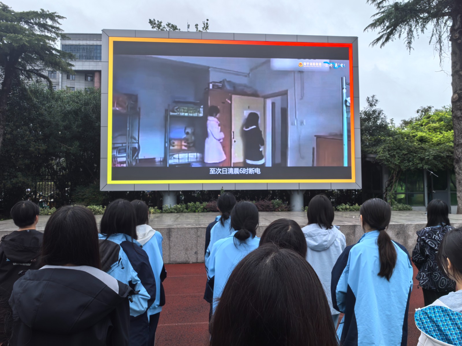 随后,全体师生在操场集中观看校园火灾警示教育片。影片通过真实案例,还原了校园内实训室、宿舍、教学楼等重点区域可能引发火灾的隐患,以及火灾发生后的严重后果,让在场师生深刻认识到消防安全的极端重要性,全体师生同时掌握了火灾初期扑救、正确逃生等关键知识。