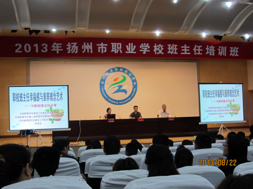 为了进一步加强学校班主任队伍建设,提高班主任的整体素质,促进班主任专业化发展,我校20多名年轻班主任在吴健书记的带领下,于8月22日上午8:30,前往扬州高等职业技术学校参加扬州市教育局组织的为期一天的班主任培训。聆听了三位全国知名专家:李国龙老师做的《职业学校班主任幸福感和素养、理念、艺术》;姜汉荣老师做的《领着“弱势学生”学会“强势”》;郑万钟老师的《定位与有为》讲座,三位专家的讲座针对性极强。