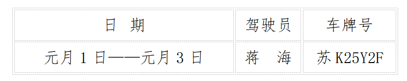 1.以上为假期间值班车辆安排,在此期间没有值班的车辆将统一封存。