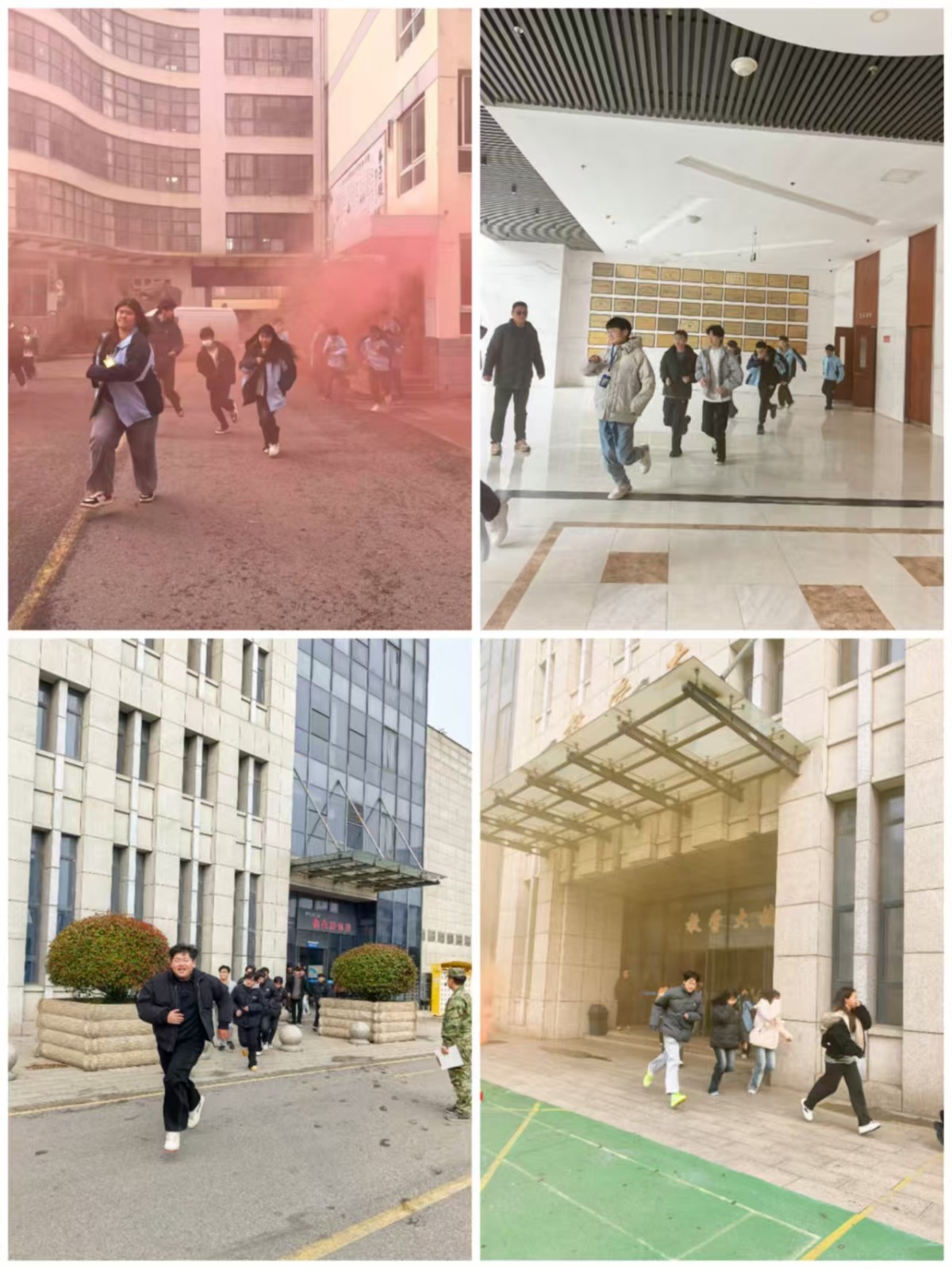 针对演练前持续阴雨、地面湿滑的情况,学生工作处坚持“安全前置”,提前召开专题部署会。强调演练活动安全,严守防滑、防踩踏底线,在教学楼大厅等关键部位铺设防滑垫,并安排专职人员在重点点位驻守指挥,全力防止撤离过程中发生滑倒摔伤事故,确保通道畅通。