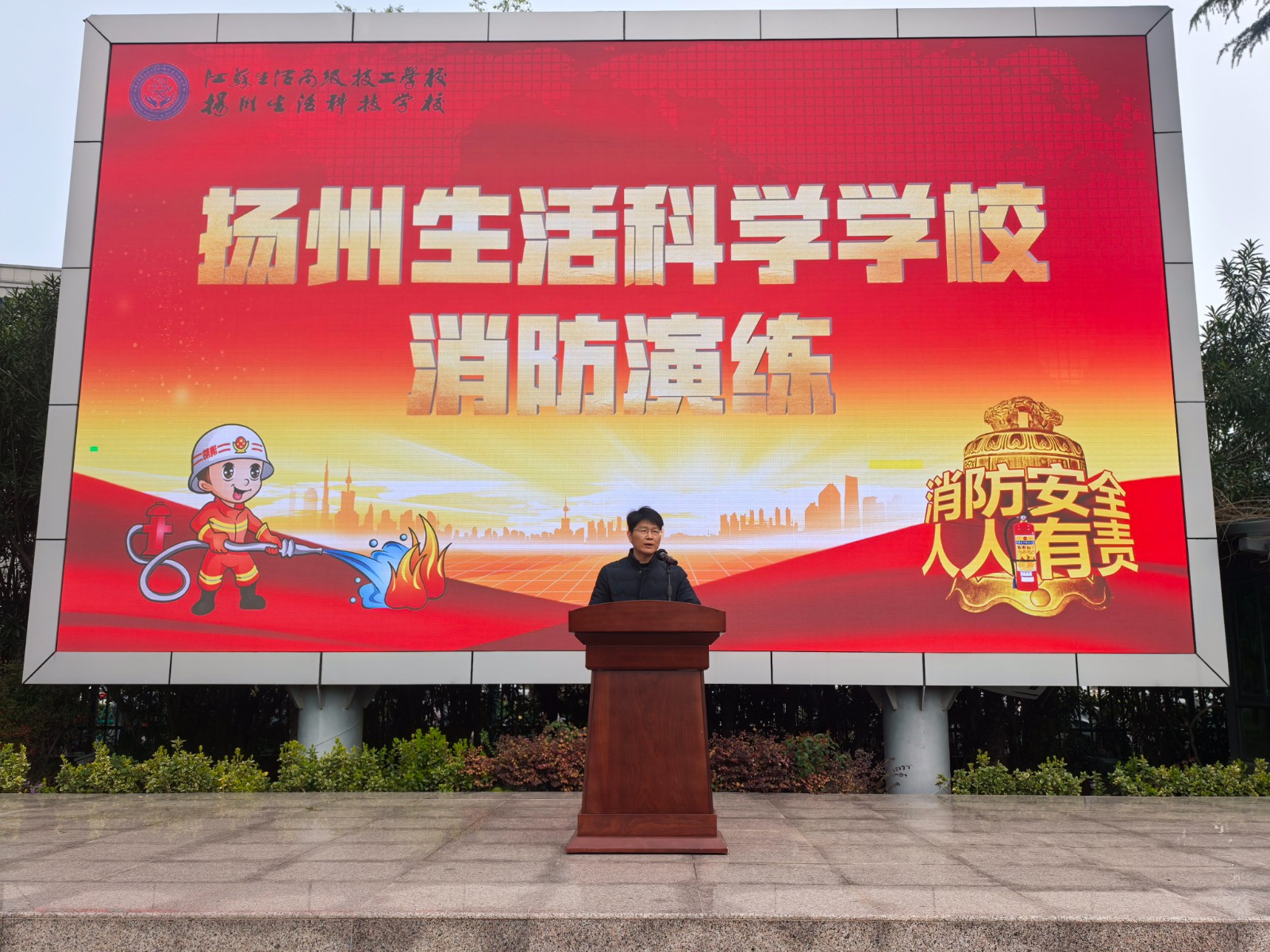 随后,分管副校长陈权明作总结讲话。他从学校安全治理全局的高度,对此次演练的实效给予了充分认可。他指出,本次演练在雨天湿滑的不利条件下仍能实现快速有序疏散,充分展现了我校应急管理体系的韧性与师生良好的安全素养。他进一步强调,安全工作只有满分没有及格,各部门要以此次演练为新起点,坚决克服麻痹思想,将安全责任落实到每一个环节、每一个角落,切实筑牢校园安全防线,为新学期高质量发展保驾护航。
