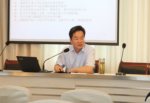 6月12日下午,机关党支部在办公楼四楼会议室举行师德建设专题党课,机关党支部党员教师参加了党课学习,党课由党委书记李东岩主持并作主讲。