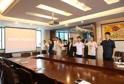 培训结束后,在组织人事科黄慧君老师的带领下,新教师进行入职宣誓:“忠诚党的教育事业,贯彻国家教育方针,履行教师神圣职责。修身立德,为人师表;终身学习,严谨治学;关爱学生,教书育人;传承文明,勇于创新;爱国守法,爱岗敬业;廉洁从教,乐于奉献。为全体学生美好未来,我愿奉献全部智慧和力量!”