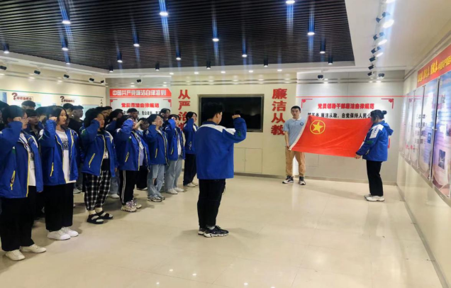 《团章》中规定:新团员必须在代表着团组织的团旗下,举行一次严肃、庄严而富有教育意义的入团宣誓仪式。6月15日下午,在团委的精心筹划下,新团员入团宣誓仪式在综合楼廉政展示厅顺利举行。宣誓仪式在庄严的团歌中拉开序幕,仪式上团委于老师宣读了本学期新团员名单,班级团支书为新团员佩带团徽,优秀团员代表庄佳琦同学代领新团员面对鲜艳的团旗,将握拳的右手举起过肩,以最宏亮的声音进行庄严宣誓。