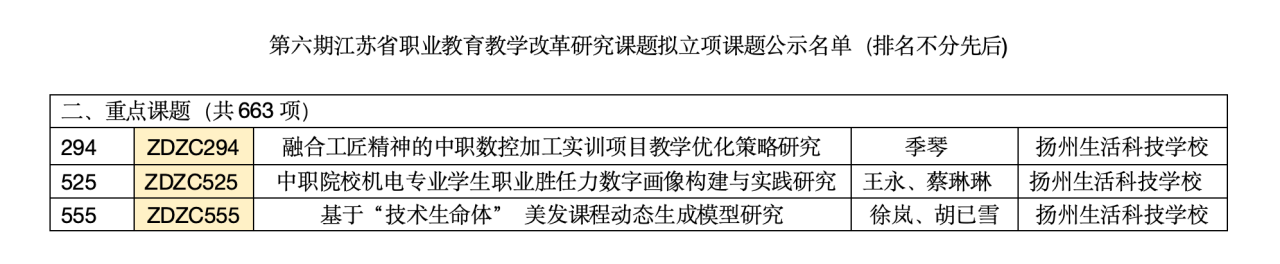 第六期江苏省职业教育教学改革研究课题立项结果公示,我校三项课题被评选为第六期省职业教育教学改革研究课题的重点课题。
