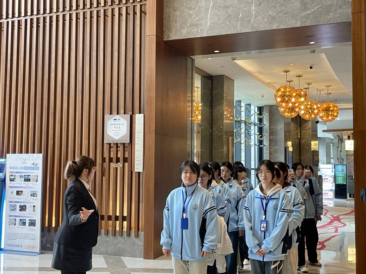 介绍结束后,在水泉涌总经理及酒店各部门负责人的带领下,同学们开启了实地参观环节。走进后厨,大家仔细查看各功能分区布局,了解食材储存、清洗处理、菜品制作等各环节的工作流程与要求,对烹饪专业实际工作场景有了清晰认知。参观过程中,同学们主动提问,与酒店工作人员交流工作细节,进一步明晰了专业学习与未来职业的衔接方向。