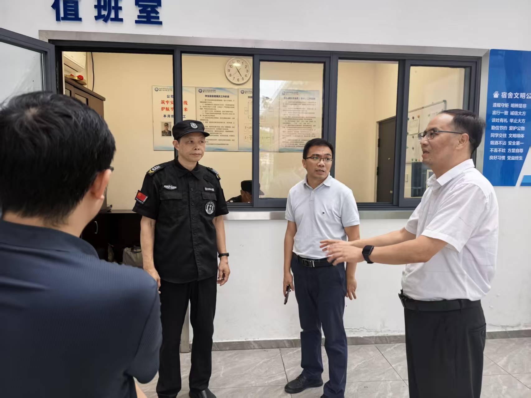为切实做好2025年国庆中秋双节期间学校安全工作,维护节日期间校园的和谐稳定,9月29日,学校安全工作委员会组织并开展了一场全面深入的假前安全大检查行动。此次检查覆盖校园各个关键区域,由学校领导章结来、聂阳、戴文军、陈权明分别带队,多个部门协同参与,全面排查各类安全隐患。