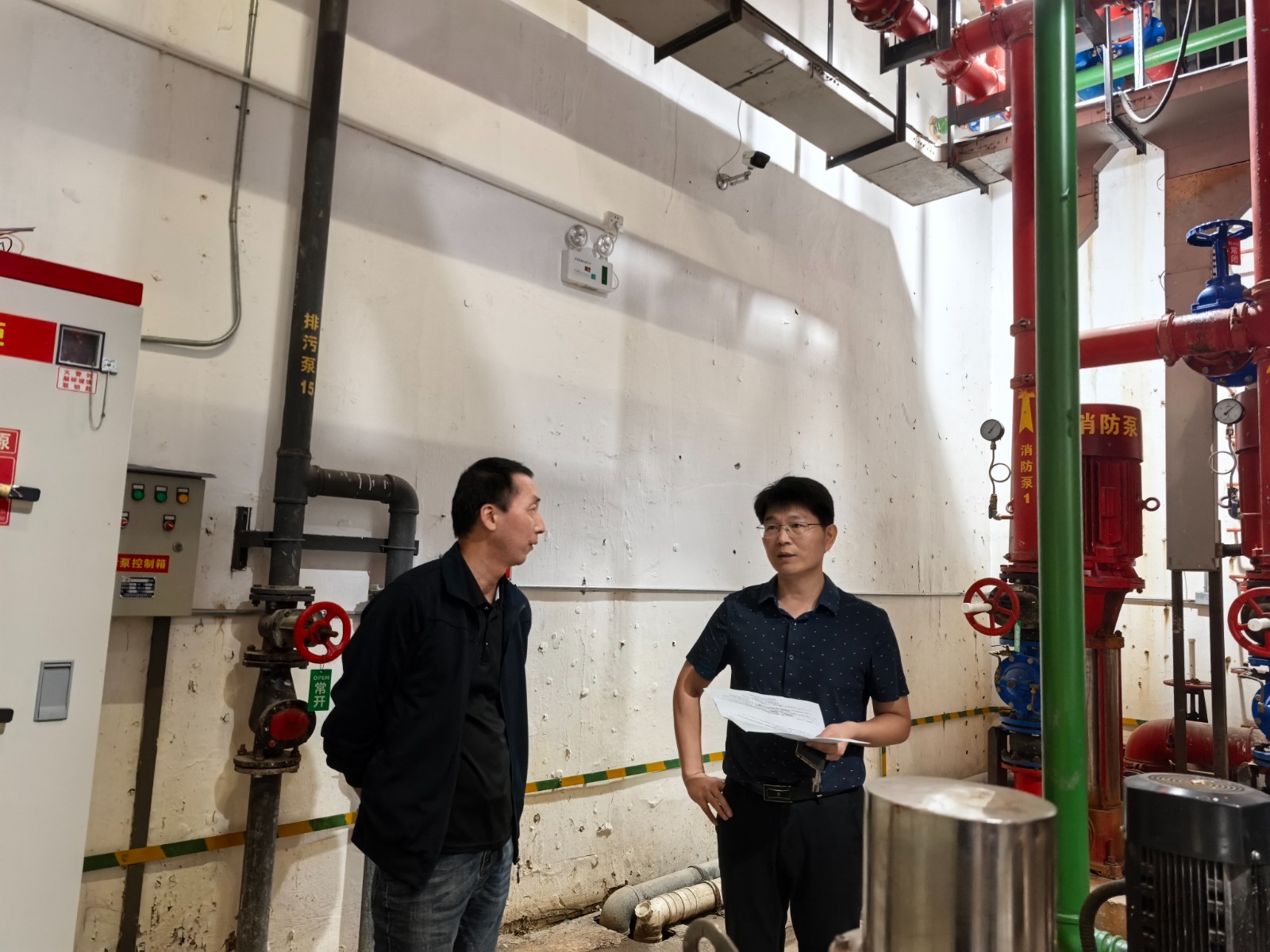 副校长陈权明带队对承租单位以及教学大楼地下室泵房、电房、消控室等重要场所进行了检查。校园管理处、财务处、工会等部门共同参与,重点排查消防设施是否完好、设备运行是否正常等安全问题,强化对重点区域的安全管控。