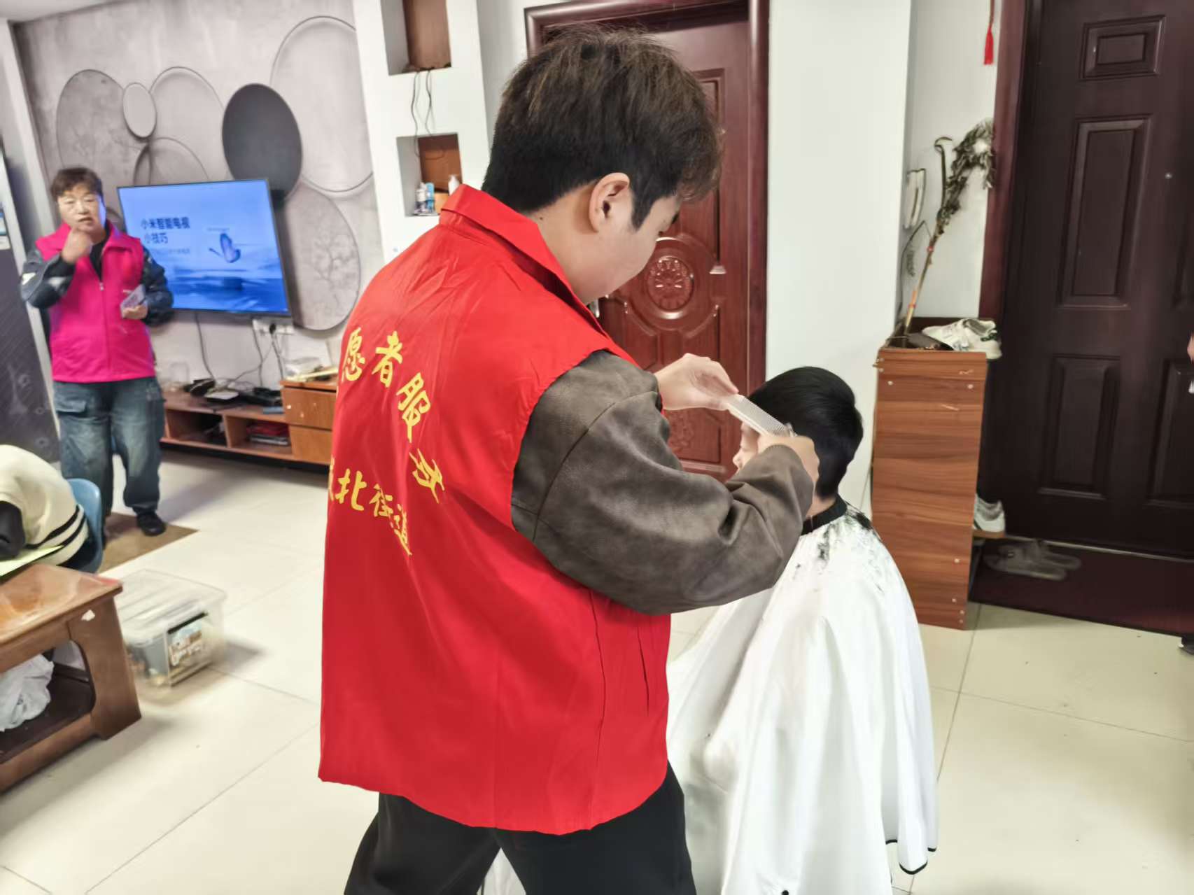 针对家庭实际需求,志愿者们发挥所长提供专业服务。美发专业的老师化身 “移动理发师”,根据老人和孩子的喜好,精心修剪发型,修剪过程中不断询问满意度,细致的服务让家庭成员露出满意笑容。同时,懂肩颈按摩的志愿者主动为长期操劳的家长按摩肩颈,手法娴熟地缓解肌肉酸痛,还现场教学简单的按摩技巧,方便家长日常放松。服务间隙,师生们与孩子亲切交流,倾听孩子的心声,鼓励孩子积极面对生活,用温暖的话语为孩子注入正能量。