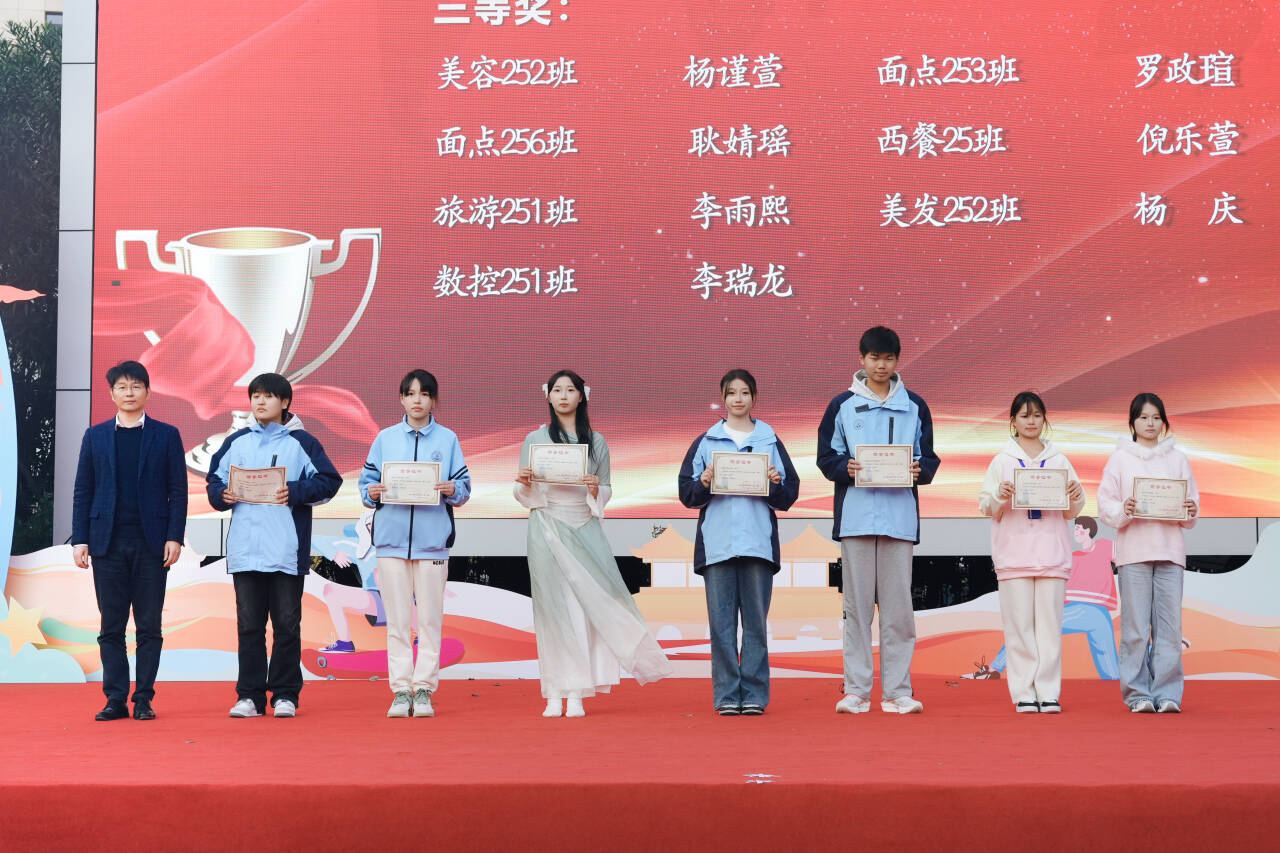 第三篇章中,机电信息系的红色故事《相信的力量》与情景演绎《雪中孤胆》,分别以真挚情感与震撼情节,展现信仰的力量与英雄的无畏。商贸旅游系舞蹈队带来的《希望之翼,掷向未来》,以灵动舞姿诠释青春姿态,用舒展动作展现 “以舞为翼、掷向未来”的朝气。最后,烹饪管理系的武术表演《中国人》刚劲有力,两个大鼓助威声势如虹,引爆中华武魂,将现场氛围推向高潮。整场演出各有特色,充分展现了学子们多元的创造力与扎实的专业素养。