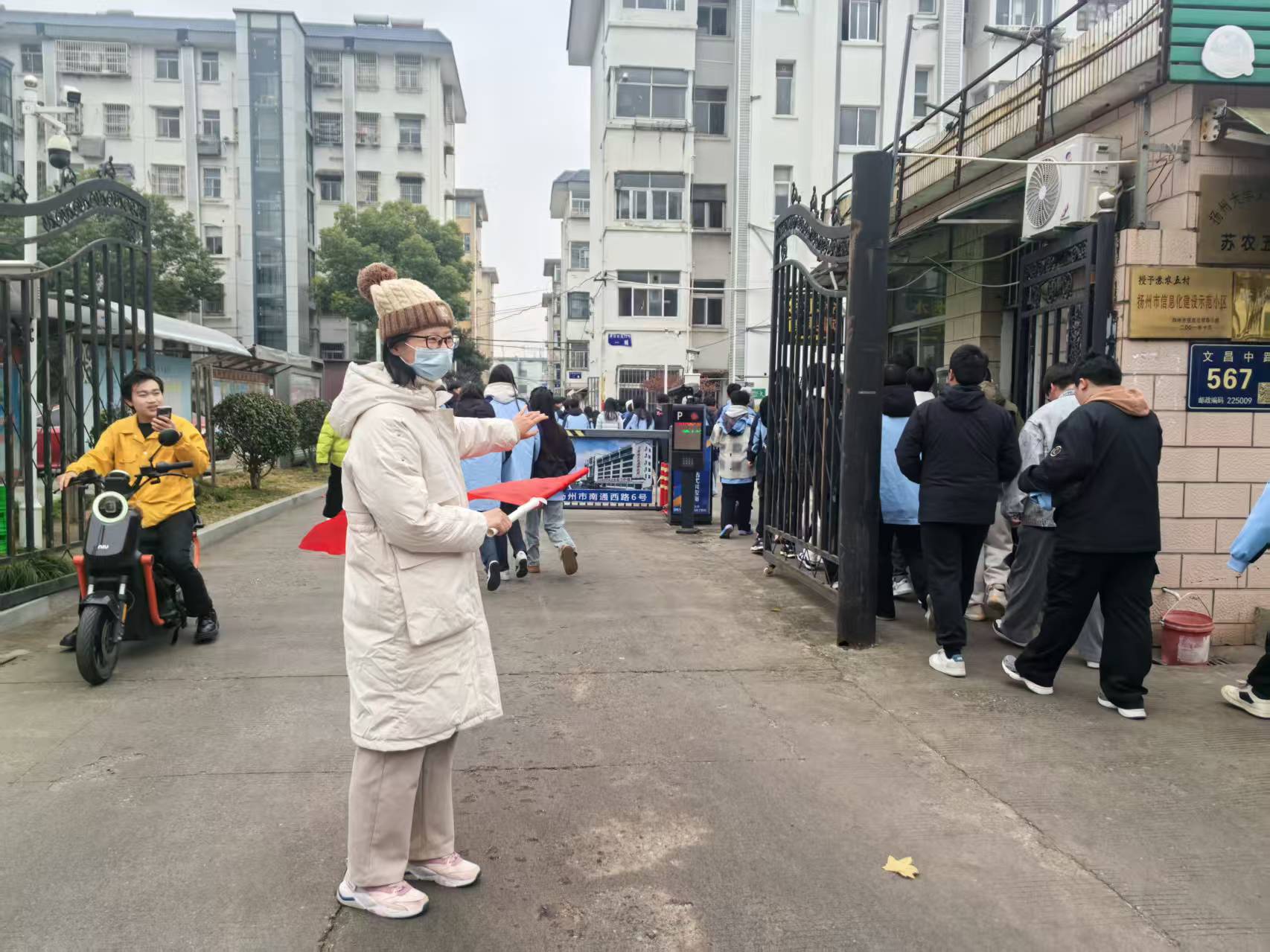 12月24日下午,我校组织学生前往扬州大学农学院大礼堂,参加校园文化艺术节闭幕式。为保障学生出行安全,教辅党支部党员主动参与志愿服务,提前驻守苏农五村南门、北门关键区域,用责任与担当为活动顺利开展保驾护航。