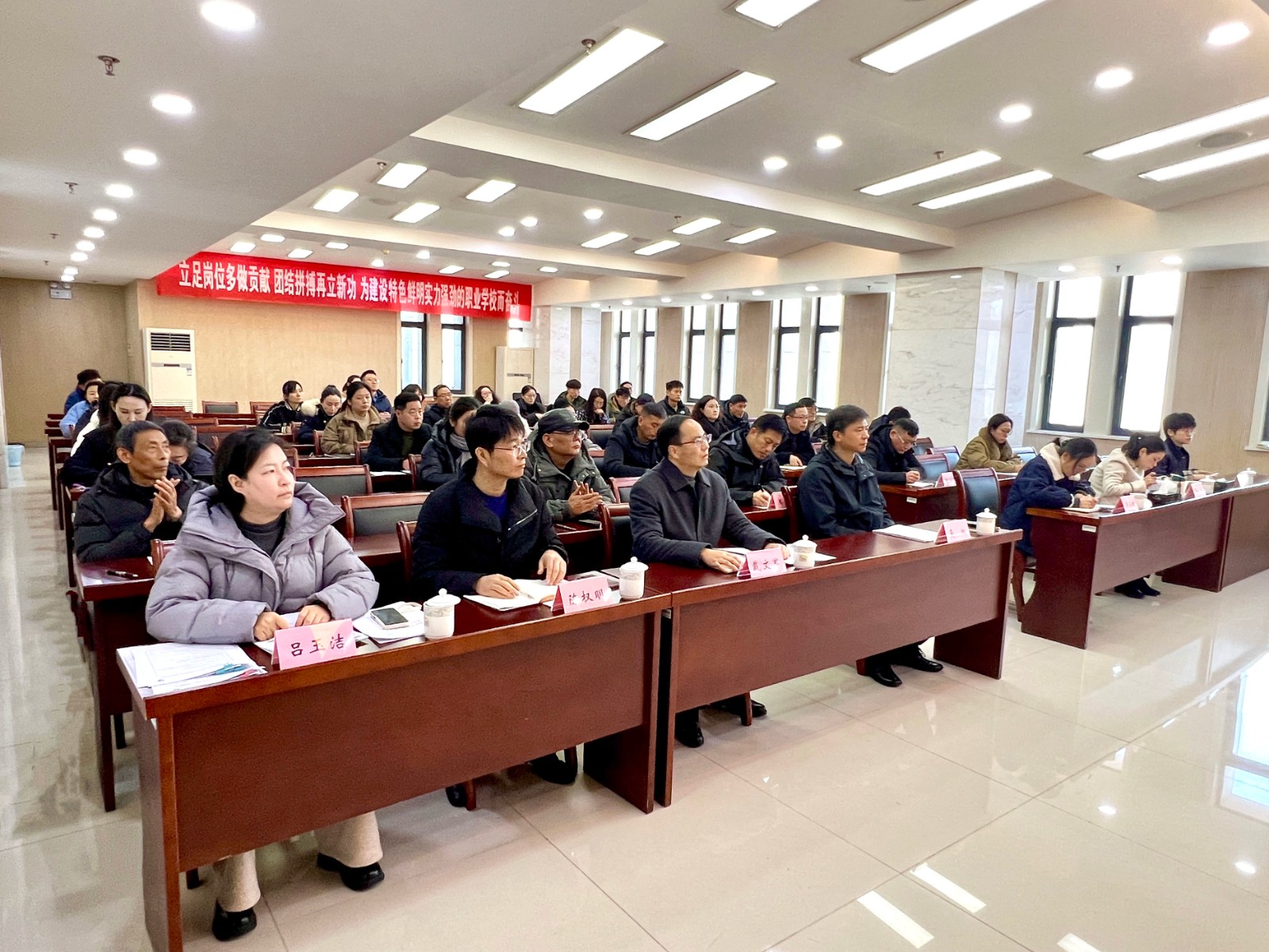 1月14日,学校召开领导班子及成员2025年度考核大会。省厅机关党委专职副书记(正处职)兼离退休干部处处长施洋、人事教育处副处长李小敏、规划财务处一级主任科员王宁、机关党委一级主任科员周芳静,校领导班子成员、中层干部、高级以上职称人员及教职工代表参加了会议。大会由党委书记章结来主持。