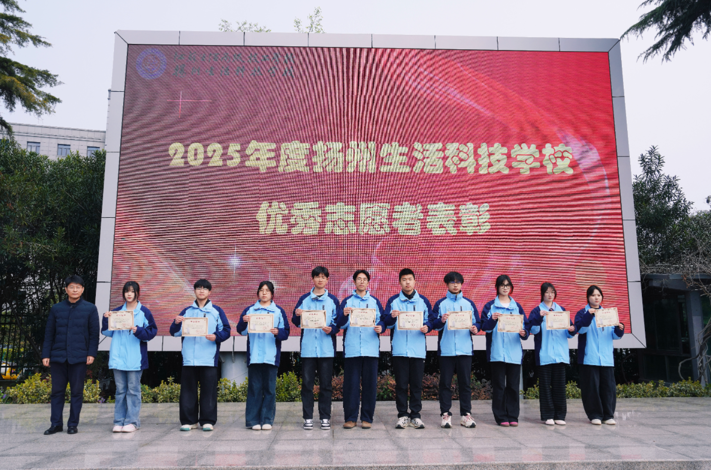 仪式现场还举行了2025年度学校优秀志愿者表彰环节,表彰先进典型,弘扬奉献精神,为全校师生树立榜样。随后,财会 24 班学生孟知歌代表全体学生,发表《践文明之行、立青年之志》文明行为倡议书,向全校同学发出践行文明礼仪、规范自身言行、共建文明校园的倡议,呼吁大家从点滴做起,以实际行动诠释新时代中职学生的文明素养。