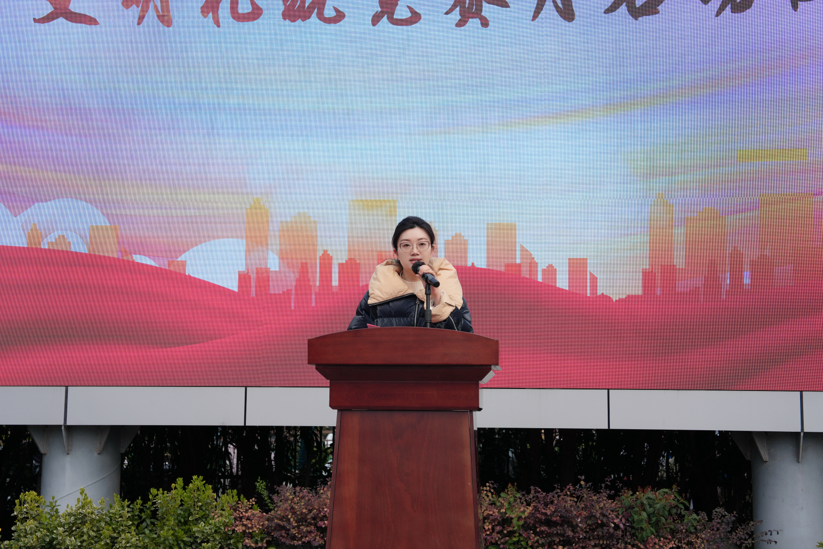 为深入推进校园精神文明建设,涵养青年学子崇德向善、知礼明纪的优良品格,我校举行了2026年“倡导文明新风,共建美好校园”文明礼貌月启动仪式。本次活动由校团委副书记于晴主持,副校长陈权明出席仪式并讲话,全校师生共聚现场,共同开启文明素养提升新篇章。