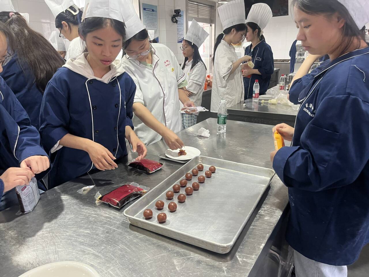早在活动前,烹饪管理系便精心筹备冰皮月饼制作环节。实训室内,师生们围聚在操作台前分工协作:有人仔细筛选优质食材,有人耐心揉制软糯冰皮,有人用心调配清甜馅料,每一个步骤都凝聚着细致与关爱。大家专注的神情、默契的配合,让制作过程满是温情,最终成型的一枚枚冰皮月饼,不仅颜值喜人,更包裹着浓浓的关怀,成为这个中秋最特别的节日礼物。
