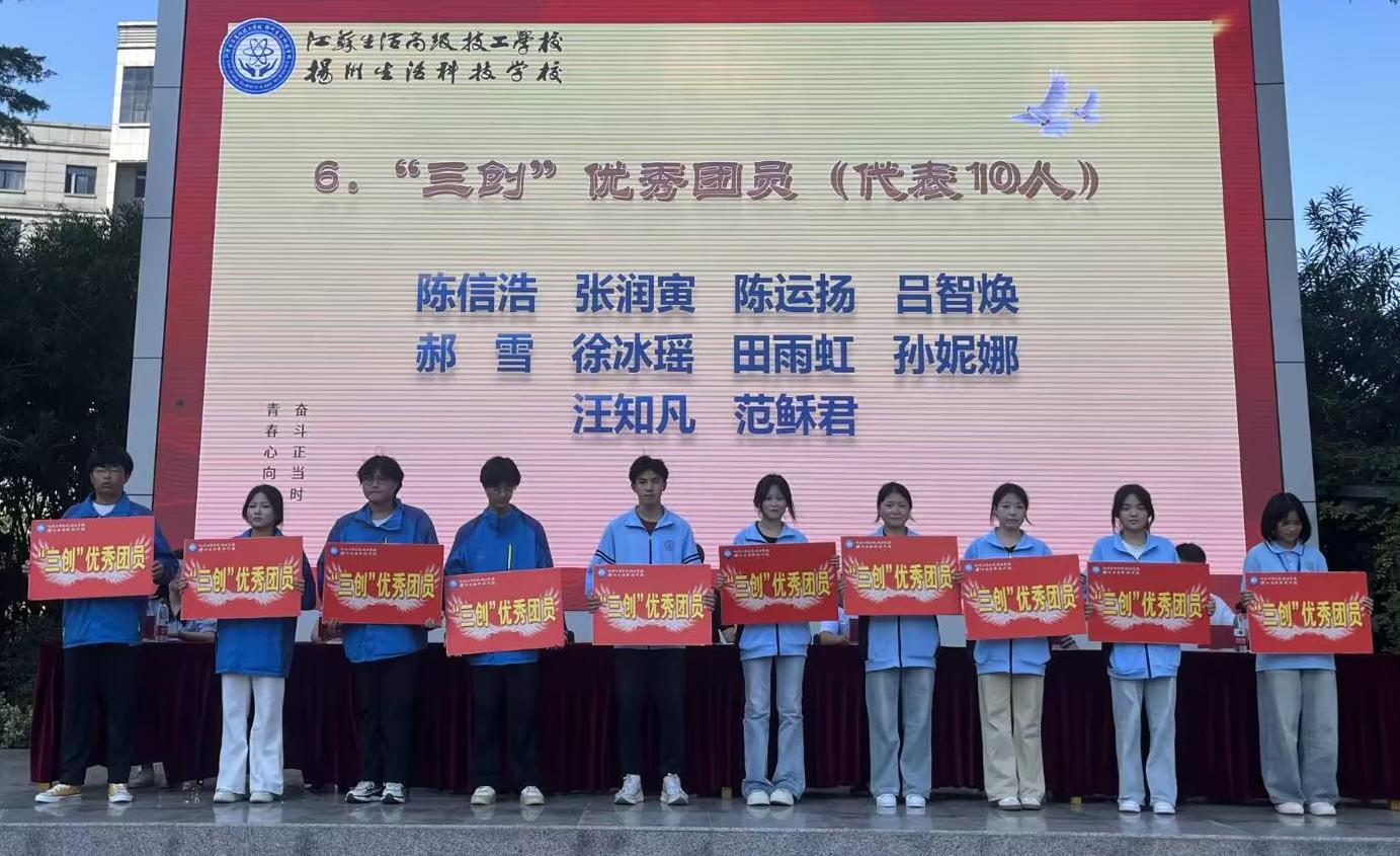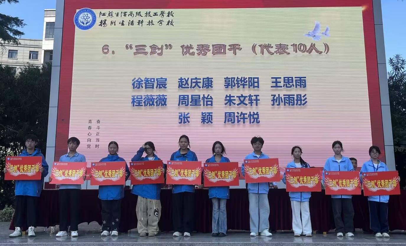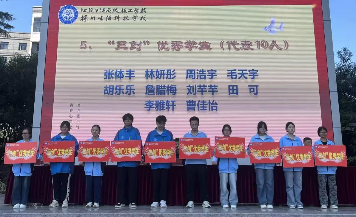 颁奖仪式随即展开,主席台领导与系部领导依次为获奖集体、个人颁奖。6个“三创”文明班级、4个“红旗”团支部的代表先后上台,从领导手中接过荣誉牌匾,眼神中满是集体荣誉感;学校特等奖学金获得者代表、一等奖学金代表,以及“三创”优秀学生、优秀学生干部、优秀团干部、优秀团员代表分批登台,领导们与获奖者亲切互动,既是对过往成绩的肯定,更是对未来发展的期许。阳光下的荣誉证书与师生们的掌声相映,成为现场最亮眼的画面。