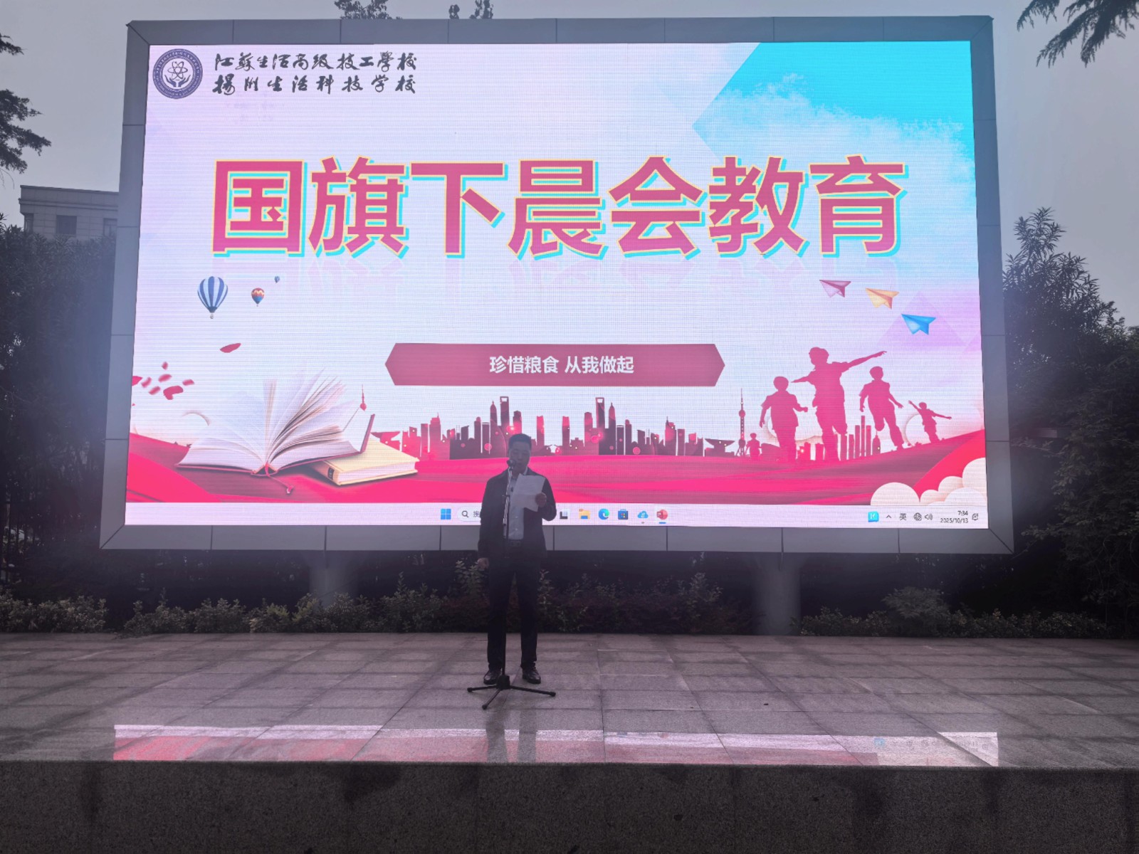 10月13日清晨,我校全体师生齐聚操场,在庄严的国旗下,开展以“珍惜粮食,从我做起”为主题的晨会教育活动。活动由烹饪管理系副主任陈华金主持,通过学生演讲、倡议号召等环节,将节约理念深植人心,传递感恩力量,弘扬校园正能量。