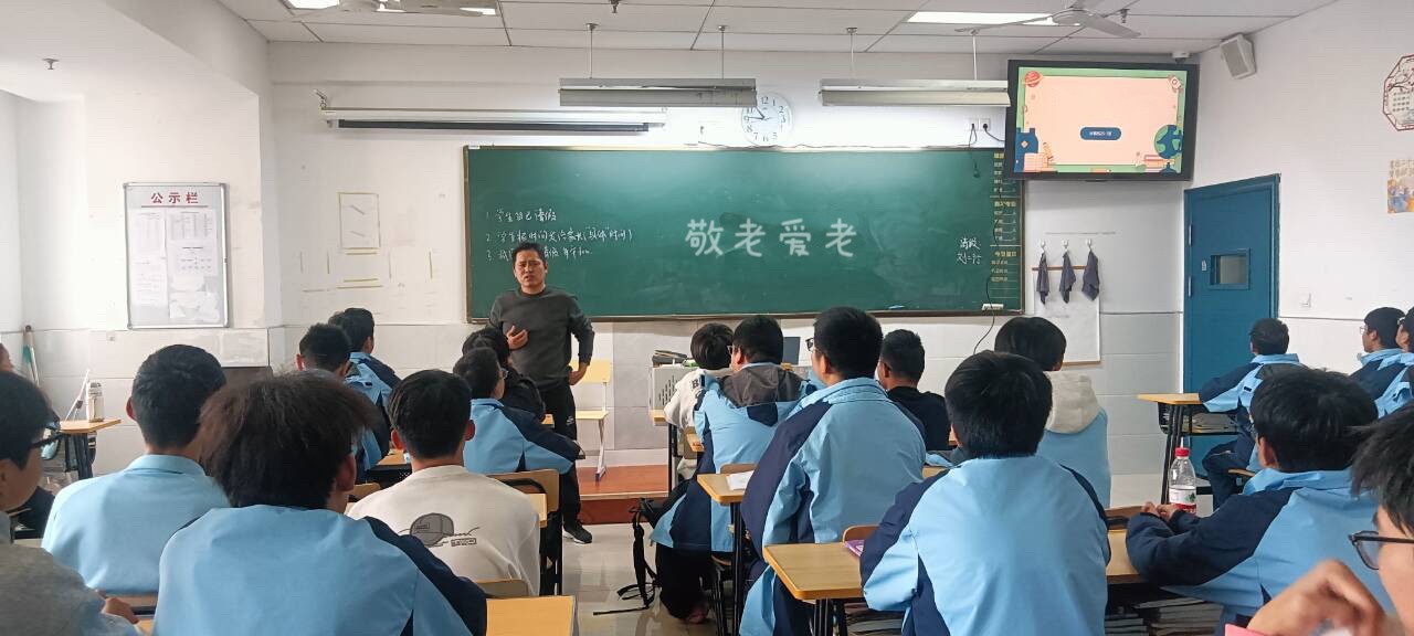 当天,各班级结合前期准备成果,开展了形式多样的主题教育活动,让课堂成为传递温暖与美德的重要阵地。在“知识讲解+案例分享”环节,学生通过PPT 展示,生动讲述了“孔融让梨”“黄香温席”等传统敬老故事,同时结合身边长辈关爱自己的真实经历,分享与家人之间的温暖瞬间,引发全班同学的情感共鸣;部分班级以“假如我是老人”为主题开展情景模拟,学生通过扮演行动不便的老人、体验使用助老设备等方式,切身感受老年人的生活困境,深刻理解敬老爱老不仅是情感表达,更是实际行动的付出;此外,各班级还组织了“敬老爱老行动计划”讨论,学生分组交流未来将如何用实际行动关爱身边老人,如定期陪长辈聊天、帮助社区老人解决生活难题等。