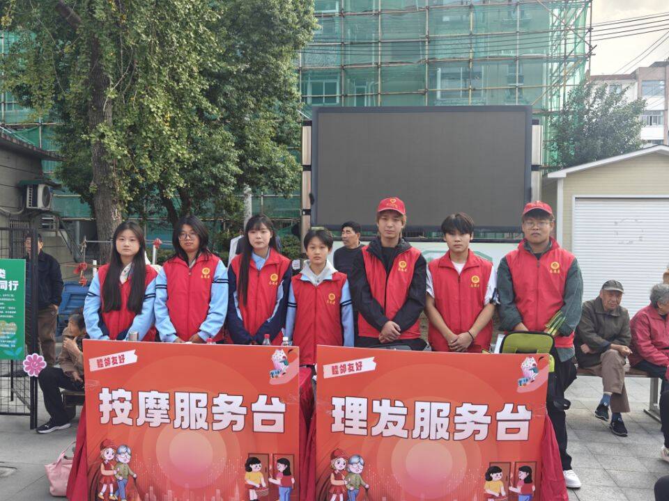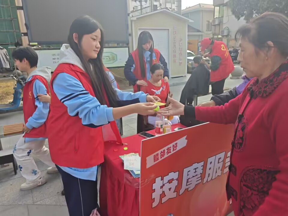 另一边,美容专业学生带来的肩颈按摩服务同样备受欢迎。针对老年人常见的肩颈酸痛问题,同学们运用专业按摩手法,结合经络知识精准按压穴位,还现场讲解日常保健技巧。“力道刚好,按完肩膀轻松多了!” 刚体验完按摩的陈奶奶连连点赞。据带队老师介绍,这些学生均经过系统实训,此次服务既践行了 “奉献、友爱” 的志愿精神,更是对专业技能的实战检验。