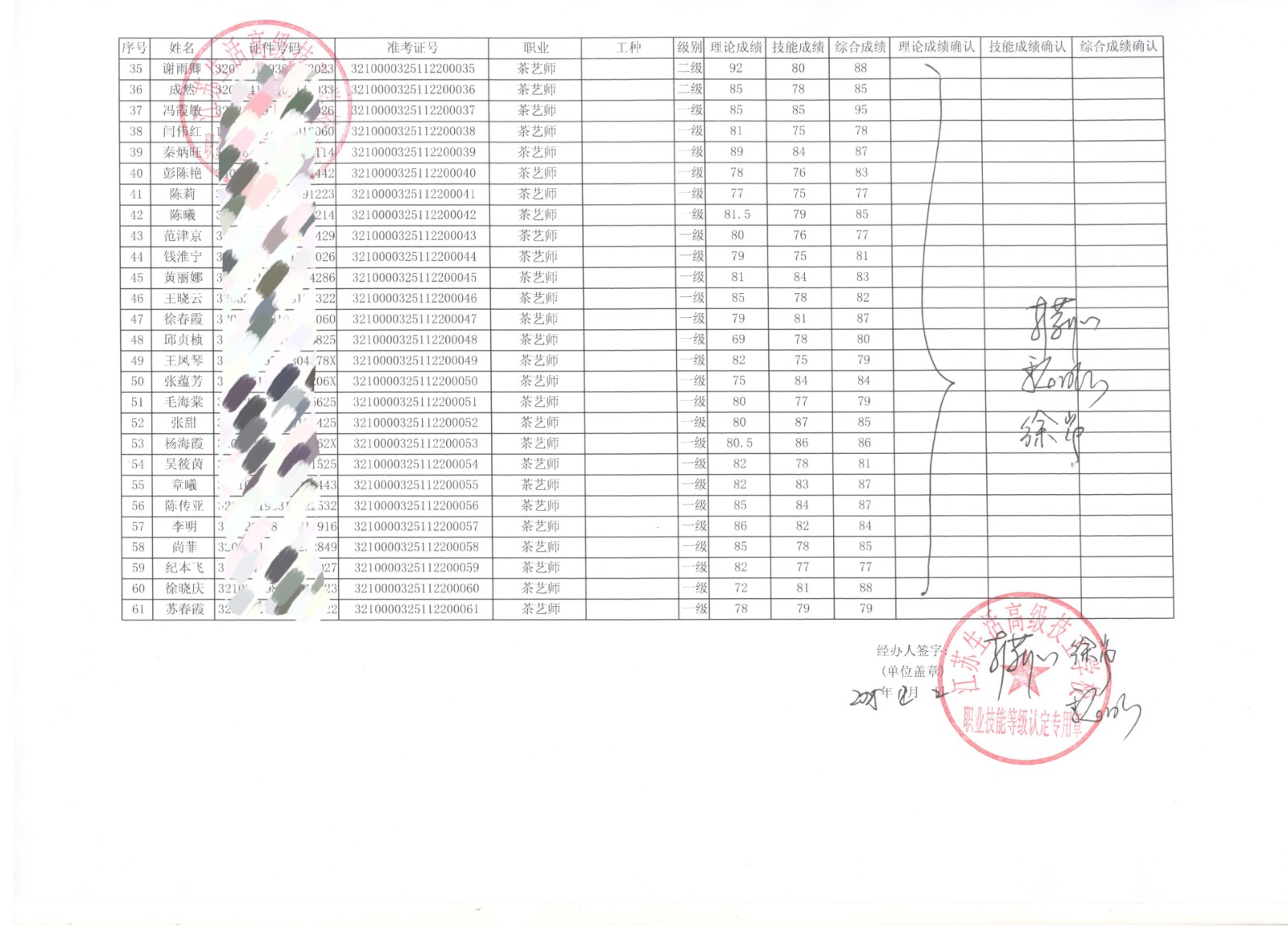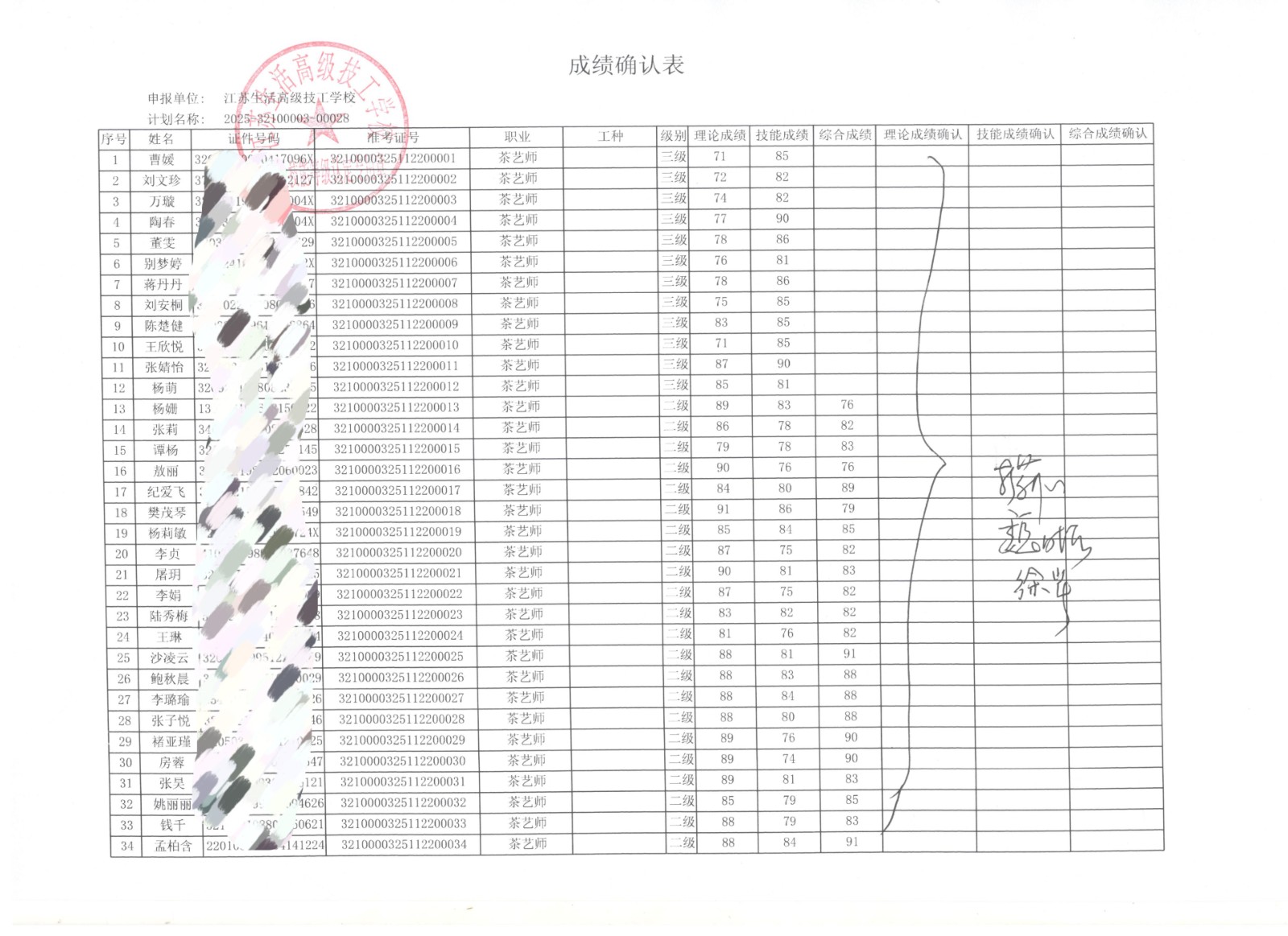 职业技能等级认定 茶艺师1级2级3级2025-32100003-00028 批次成绩公示