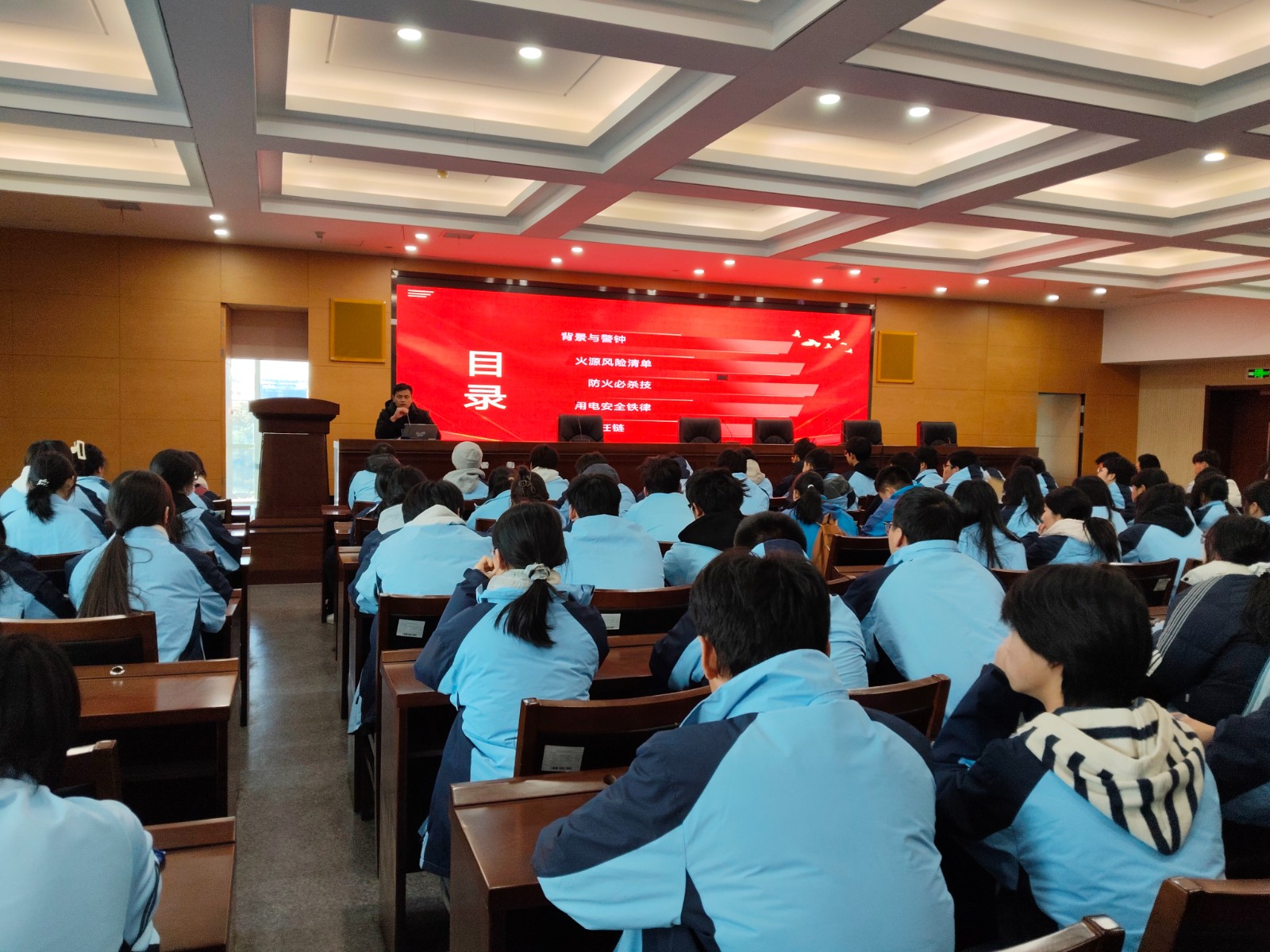 活动伊始,全体学生集中观看了宿舍安全隐患警示片。影片通过真实案例还原、隐患场景解析等方式,直观呈现了 “三无” 电器使用、私拉乱接电线、易燃易爆物品存放等违规行为引发的安全事故,深刻剖析了宿舍火灾、触电等隐患的形成原因与严重危害。片中特别曝光了系部前期宿舍安全排查中发现的违规电煮锅、打火机等危险物品,让学生清晰认识到 “看似不起眼的小物件,可能成为威胁安全的大隐患”。真实的案例、触目惊心的画面,为在场学生敲响了安全警钟,有效强化了大家的风险防范意识。