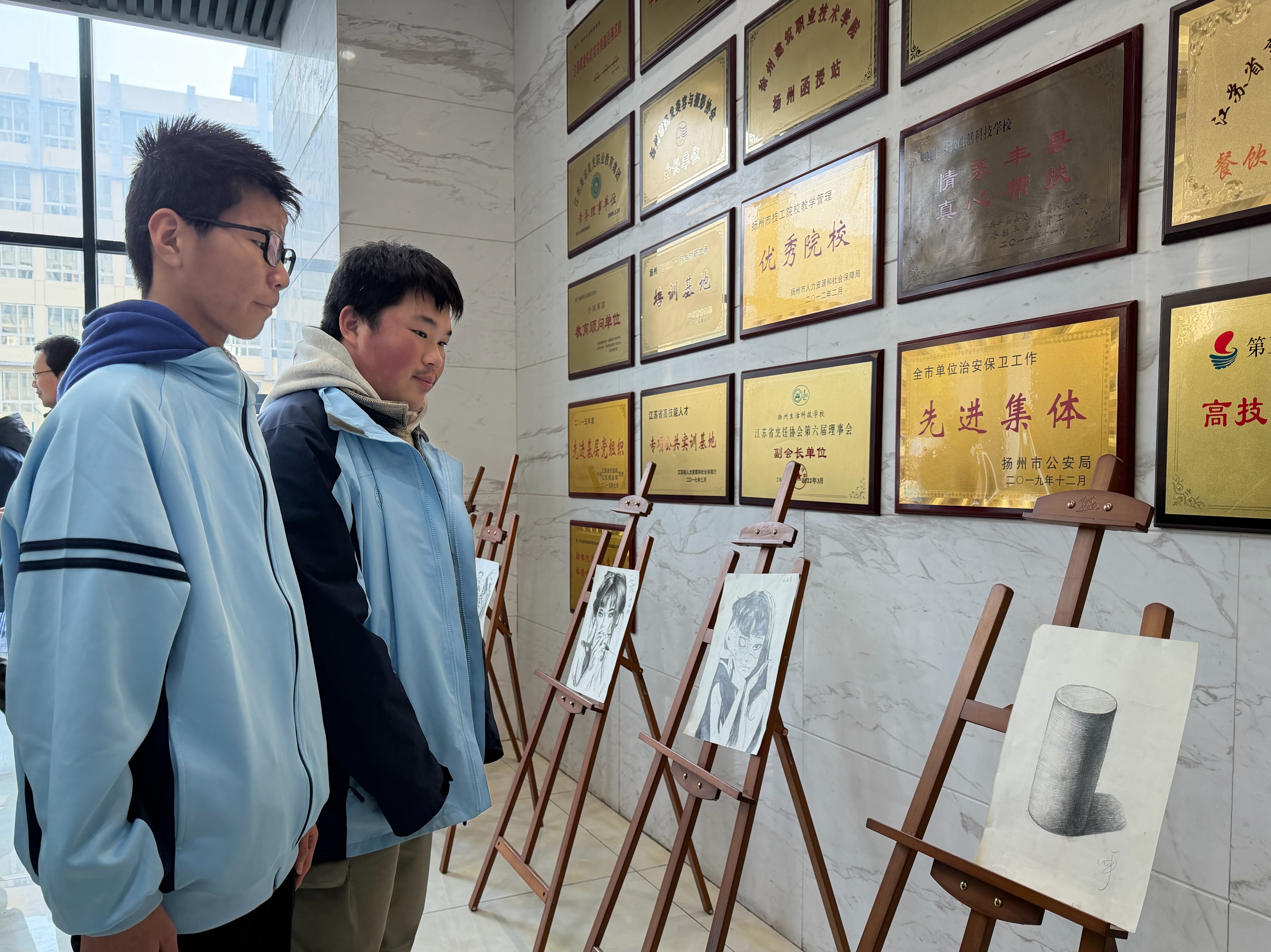 在计算机专业的展示区域,炫目的数字海报与质朴的素描作品相映成趣。一张张运用专业软件设计制作的海报展现了同学们出色的视觉表达能力与创意思维;而一旁陈列的素描作品,则扎实地呈现了学生们深厚的美术造型基础,引得不少同学驻足品味。
