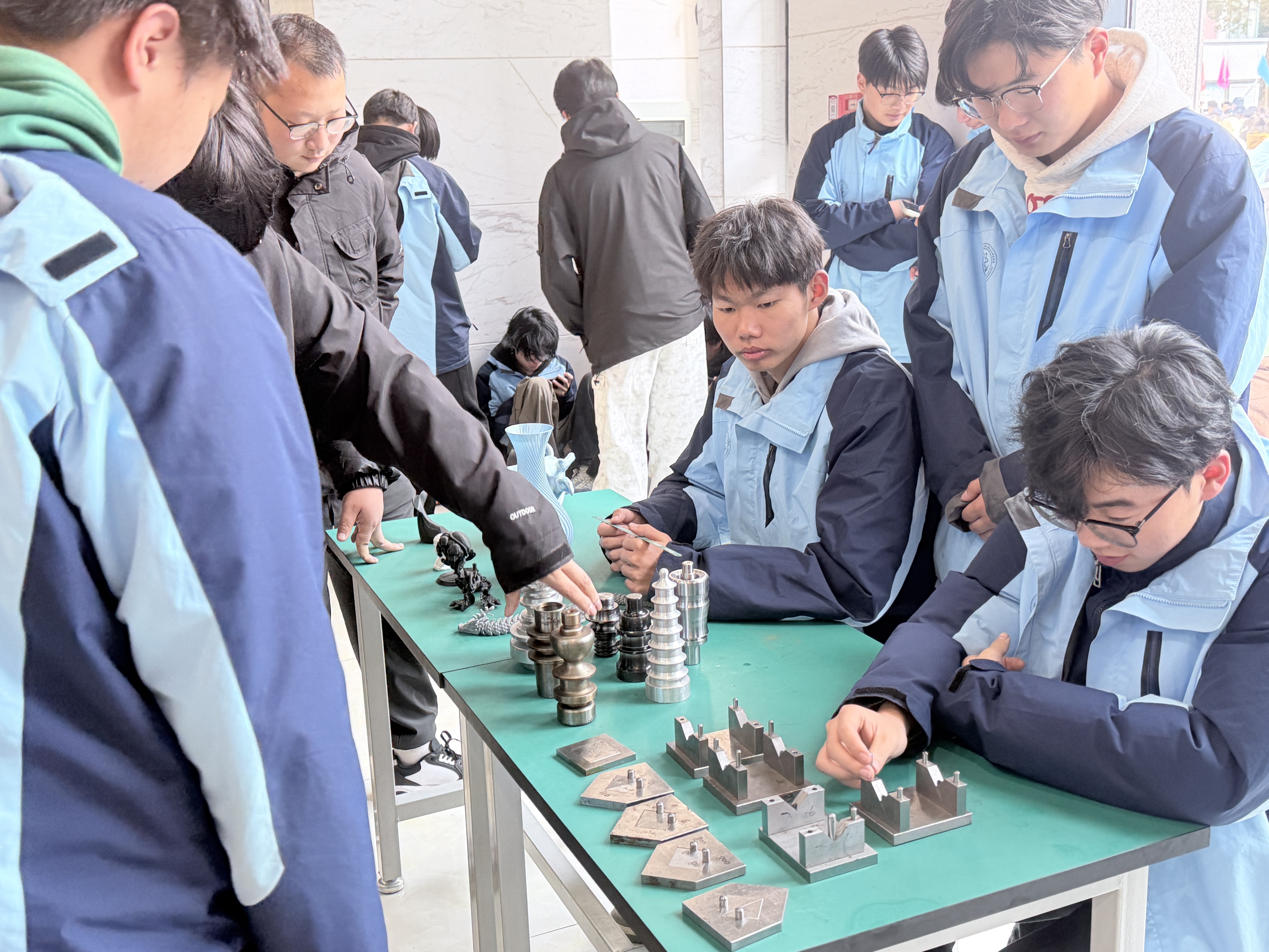 机电专业展区可谓“硬核”科技聚集地:精密的钳工作品彰显了扎实的手上功夫,复杂的数控加工零件体现了数字化制造的精准魅力,而充满奇思妙想的3D打印作品区更是围满了好奇的学生,层层叠叠的立体模型生动展现了从数字蓝图到实物的神奇转化过程,成为全场最具人气的焦点之一。