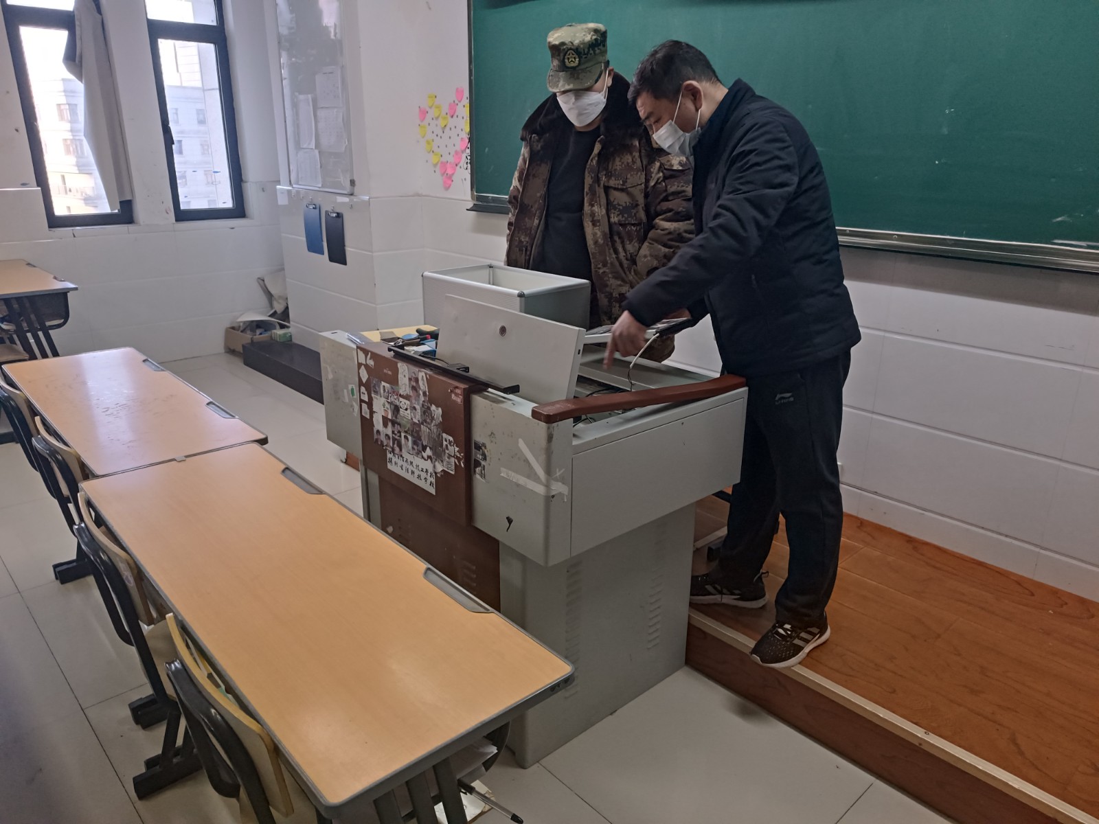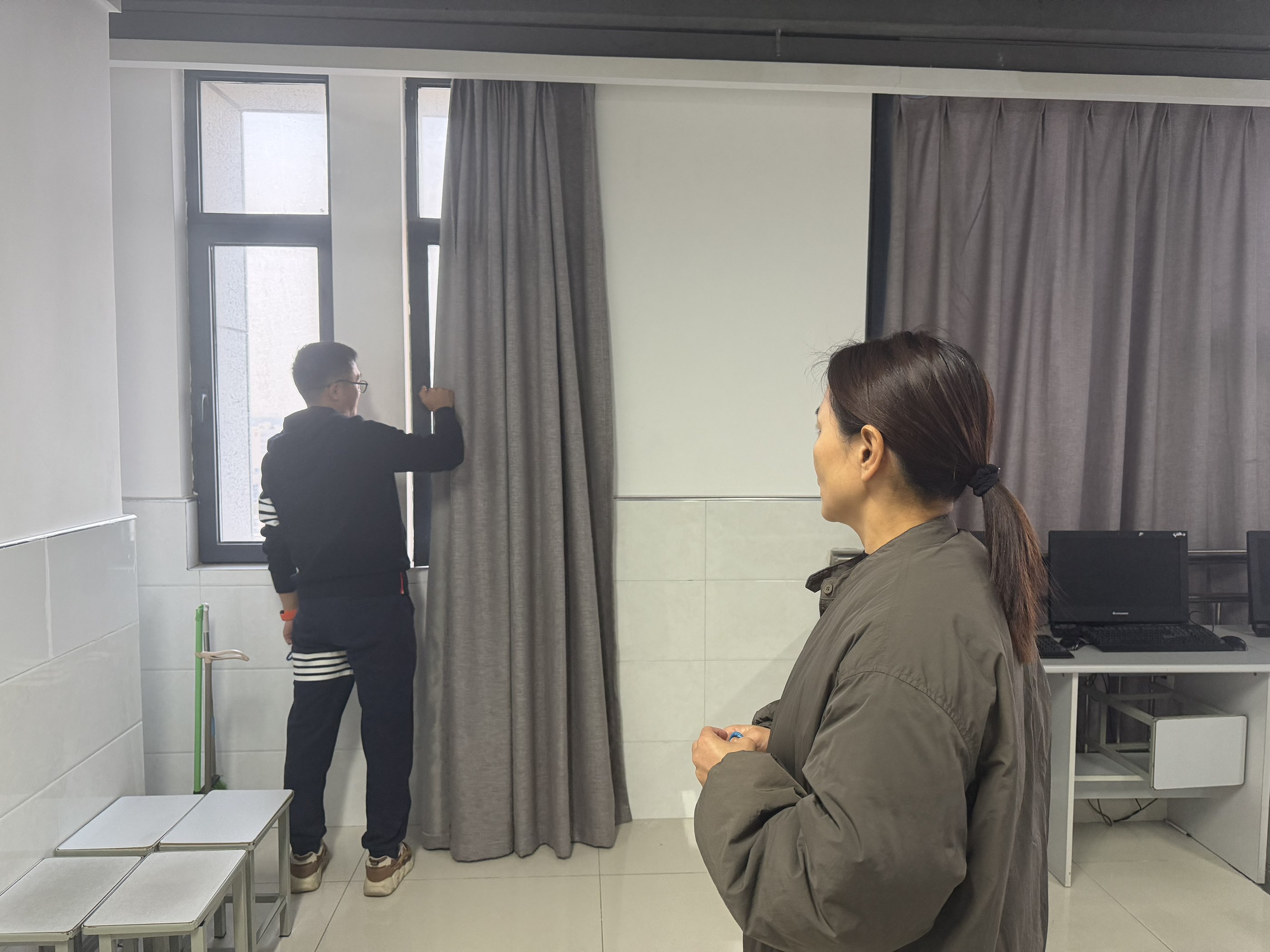 继实训室检查后,12月5日下午,安全检查的视线延伸至教室。系部学管主任张海震、教管、学管以及各班级班主任对系部各教室进行了逐一走访排查。本次检查侧重于教学设施安全与环境卫生。检查小组特别关注了讲台区域的状况,打开讲台柜门,仔细检查内部是否有杂物堆积、是否存在学生私人物品长期存放、线路是否杂乱等现象,防止因杂物堆放引发安全或卫生问题,同时确保教学设备散热通畅、取用安全。此外,还对教室内的门窗限位情况、照明设施、风扇吊挂安全性以及公共区域卫生死角等进行了查看。此次检查要求各班级务必重视教室日常管理,保持整洁有序的环境,杜绝在教室内违规使用大功率电器,共同维护安全、和谐的学习空间。