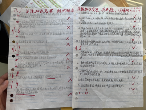11月20日我校参赛学生由各系组织进行了线上初赛的考试环节,参赛学生热情洋溢,来自平面251班许皓轩同学自豪的展示了自己的学习成果,他说:“好记性不如烂笔头,我抄写了所有线上学法的题目!”面对法律知识竞赛他表示充满信心。本次法律知识竞赛切实帮助学生拓宽了劳动法、网络安全法等职业发展相关知识面;为全校打造了学法、懂法、知法、用法的良好学习氛围。