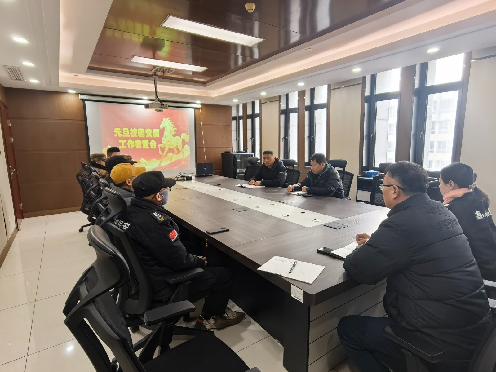元旦佳节将至,为切实保障假期校园安全稳定,筑牢校园安全防线,12月31日,学工处鲁宁处长在404会议室召集校园安保、宿管、消防等相关工作人员,召开元旦期间校园安全工作部署会议。