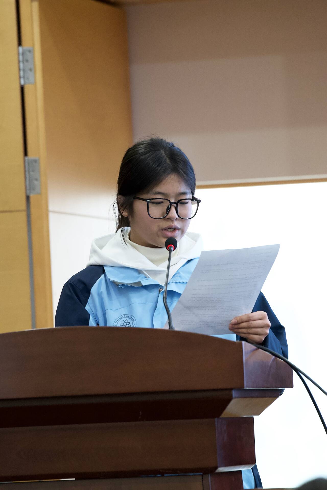 大会伊始,校学生会主席孟知歌对本学期工作进行全面总结。她从校园文化活动组织、日常学生服务、师生沟通桥梁搭建等方面,回顾了本学期学生会的工作成效:从丰富多彩的文体活动到细致入微的日常服务,每一项成果的背后都凝聚着全体成员的辛勤付出。同时,她也客观分析了工作中存在的不足,并明确了下一阶段的努力方向,展现了学生会求真务实、砥砺前行的良好风貌。
