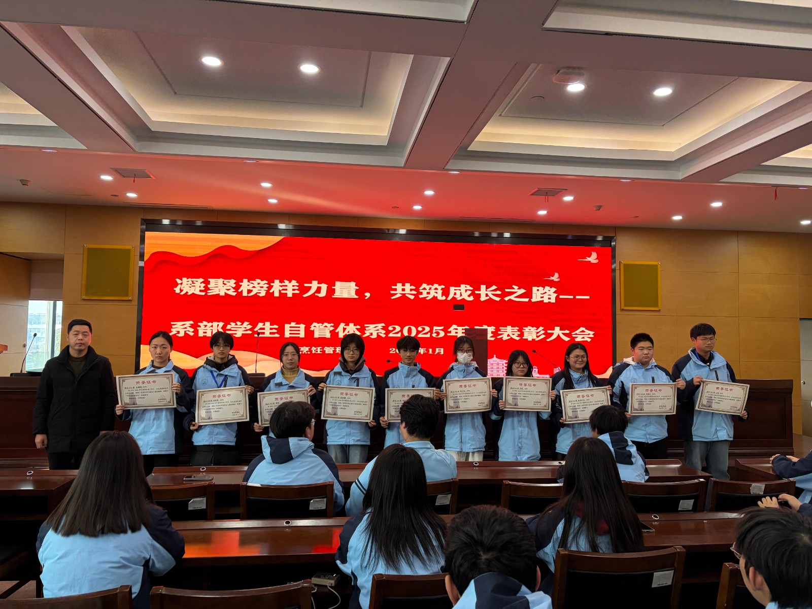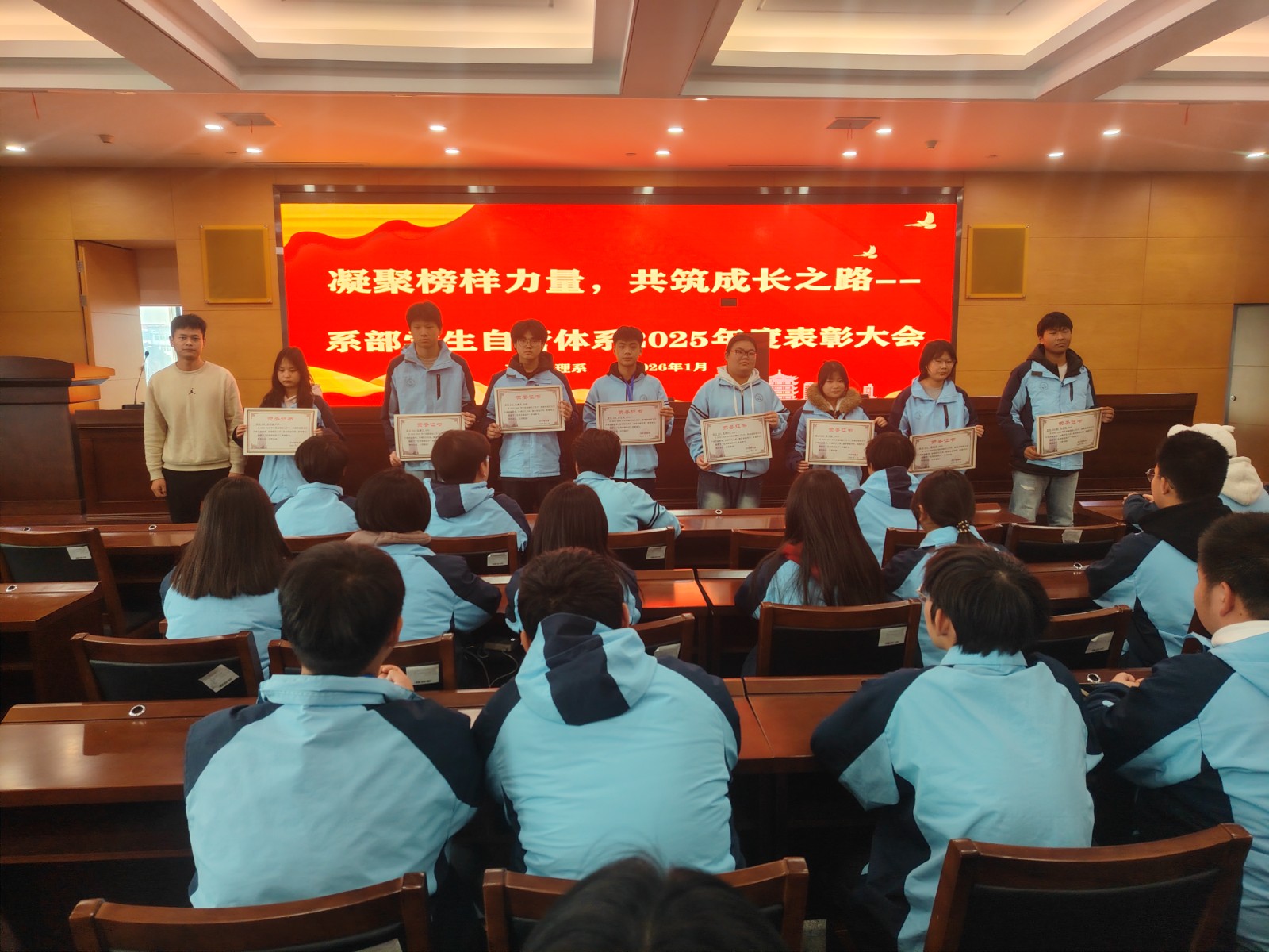 此次表彰大会不仅是对2025年度烹饪管理系学生自管工作的总结与肯定,更为全体自管成员指明了前进方向。今后,烹饪管理系学生自管体系将以此次表彰为新起点,把荣誉化为动力,把期望化为行动,牢记服务同学的初心,在今后的学习和工作中锐意进取、团结协作,为建设更加美好的系部环境贡献青春力量。(文/图 周杰 审核/陆红梅)