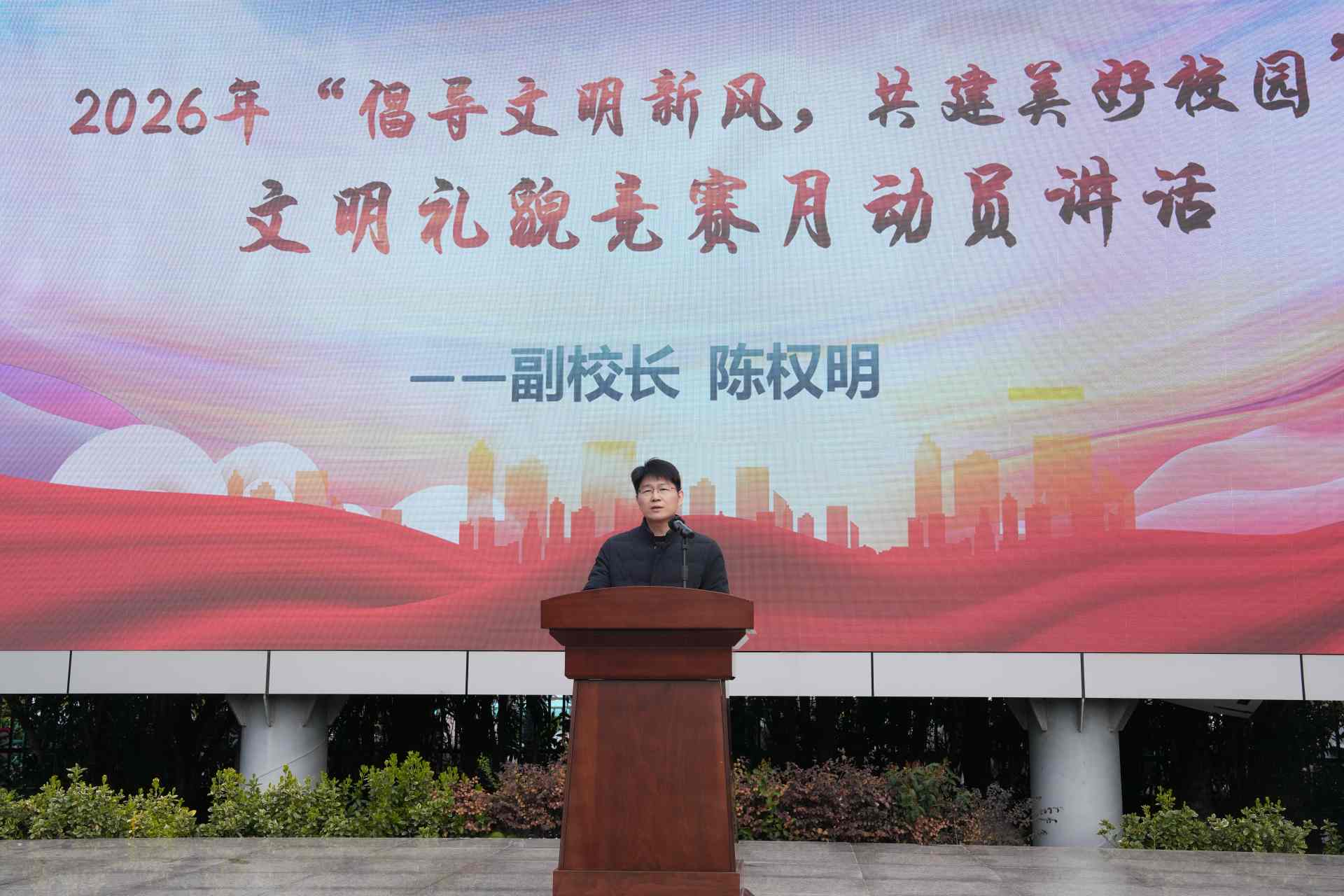 为深入推进校园精神文明建设,涵养青年学子崇德向善、知礼明纪的优良品格,我校举行了2026年“倡导文明新风,共建美好校园”文明礼貌月启动仪式。本次活动由校团委副书记于晴主持,副校长陈权明出席仪式并讲话,全校师生共聚现场,共同开启文明素养提升新篇章。
