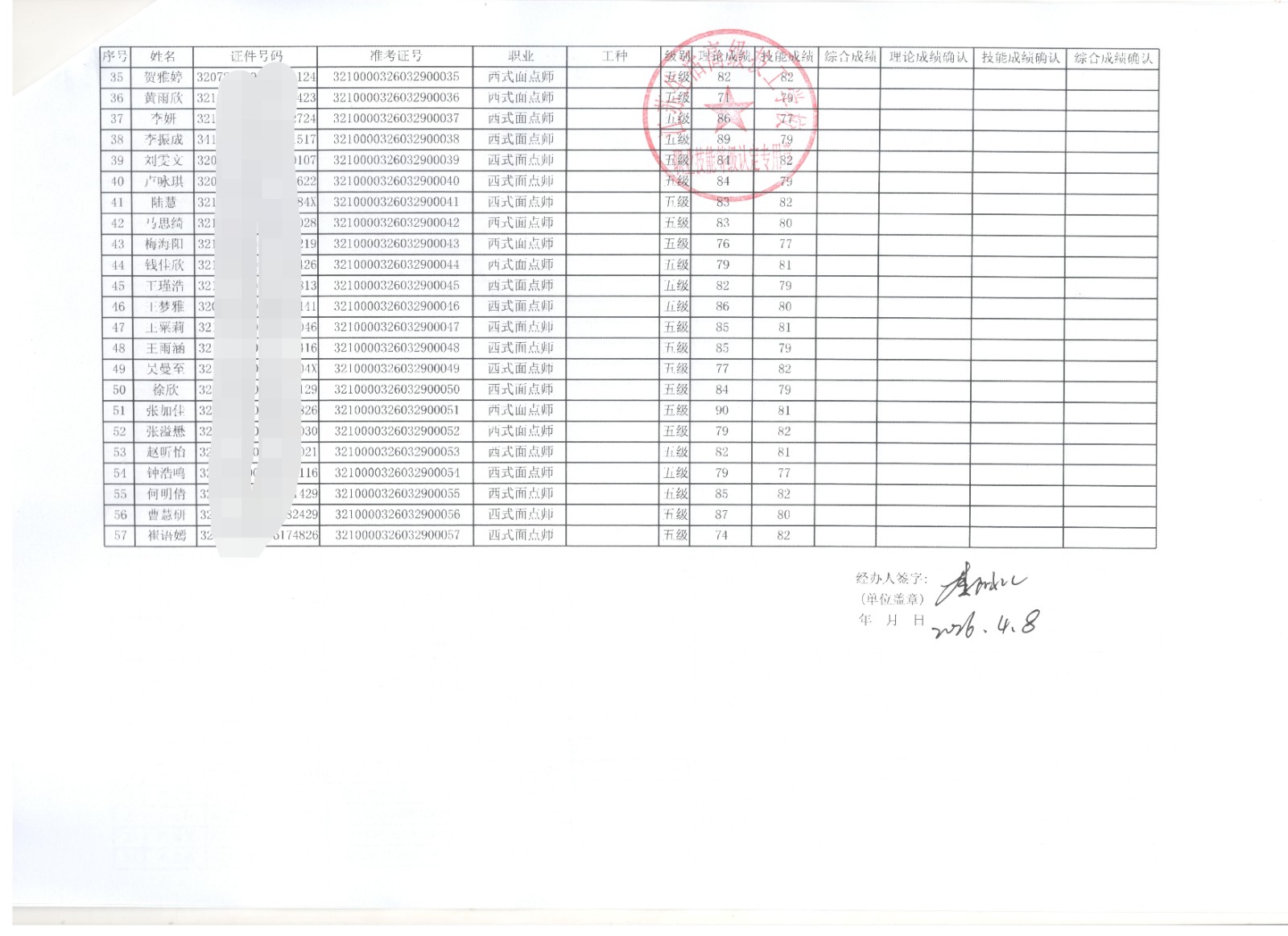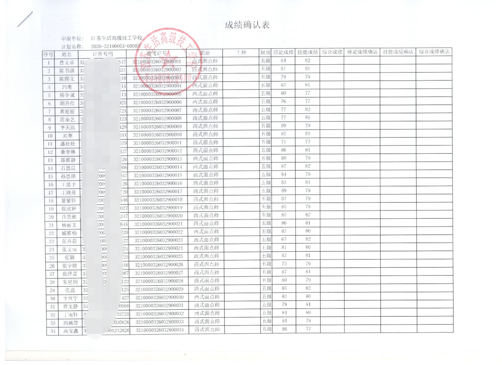 职业技能等级认定 西式面点师5级2026-003 批次成绩公示