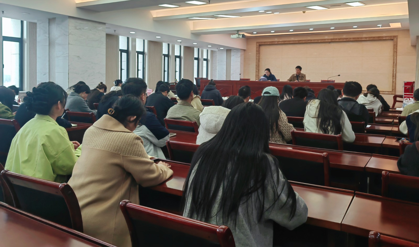 会议对本次考务工作进行全面部署,围绕考场布置标准、诚信考试宣传教育、考务工作全流程、监考人员岗位职责、考场纪律要求及阅卷规范等六个核心方面,进行了细致讲解与明确说明,强调全体监考教师需全程坚守岗位、专注履职,规范完成考场记录及监考表填写等工作。